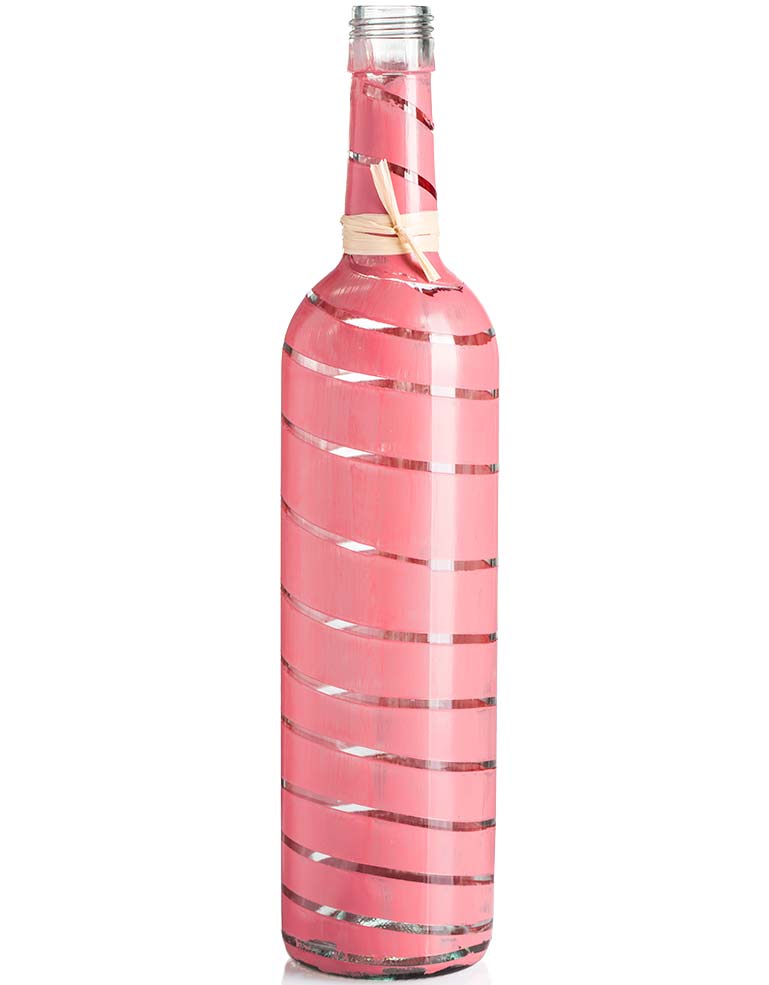 These oil bottles are sure to brighten up any kitchen! Painted in all pink with a lines and tied with a raffia. Comes with a spout to dispense oil (not pictured).